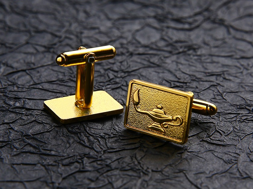 【制作工藝】:沖壓 【上色工藝】:金屬本色 【電鍍顏色】:金色 【背面工藝】:砂底 【產品配件】:袖扣腳