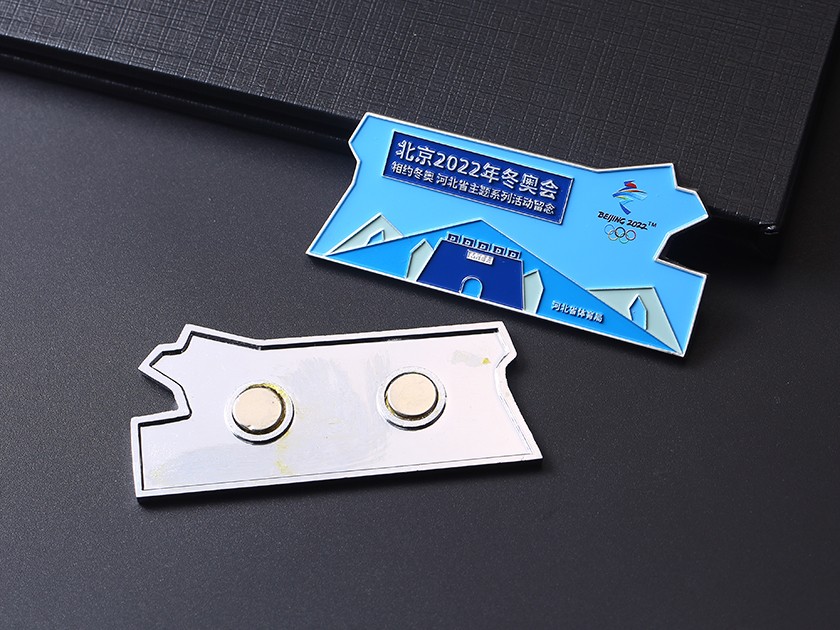 【制作工藝】:沖壓 【上色工藝】:烤漆 【電鍍顏色】:銀色 【背面工藝】:亮面 【產品配件】:磁鐵扣