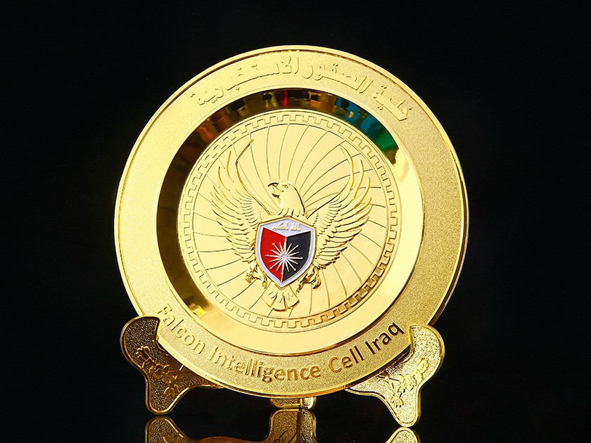 【制作工藝】:壓鑄 【上色工藝】:烤漆 【電鍍顏色】:金色 【背面工藝】:亮面 【產品配件】:金屬支架